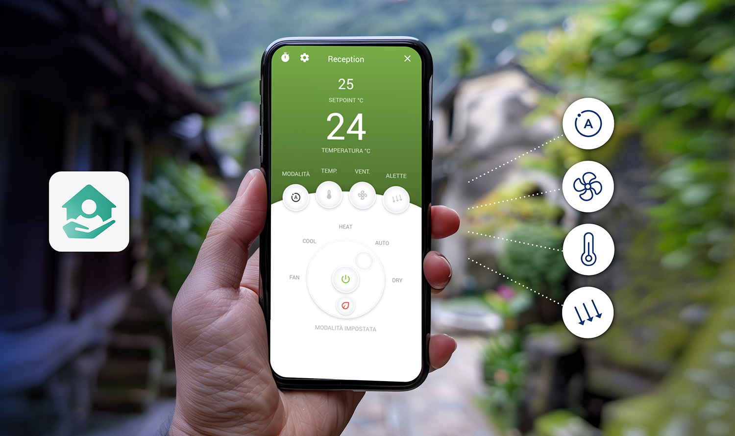 In alternativa all’APP, con centralizzatore dedicato opzionale, è possibile controllare più unità da un unico display, soluzione ideale per hotel e uffici.