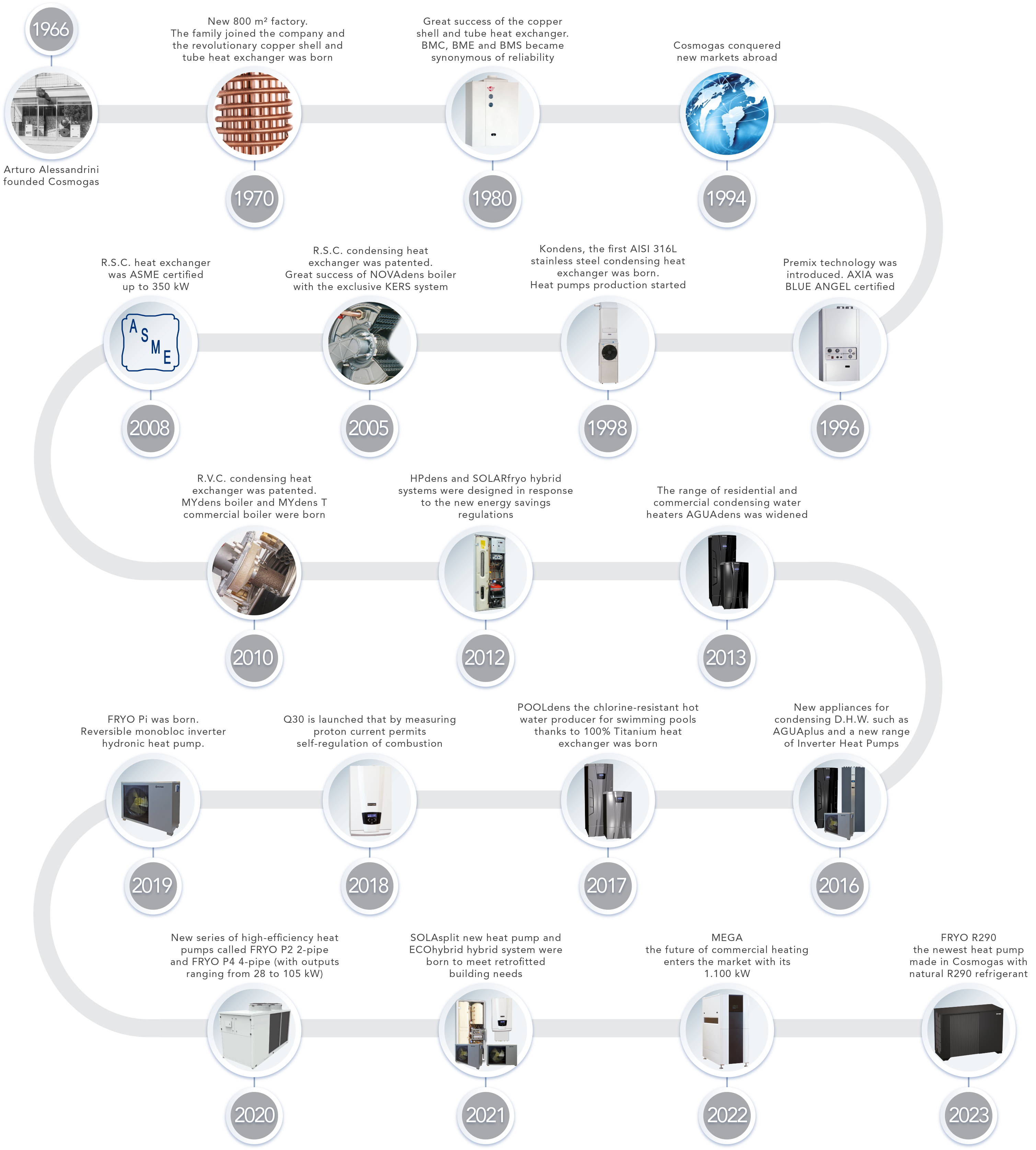 A COSMOGAS vállalatot több mint 50 év óta az Alessandrini család vezeti, azzal a szilárd meggyőződéssel, hogy „minőség teszi a különbséget”: a teljes termékválasztékot üzemen belül tervezzük, szabadalmaztatjuk és gyártjuk, az alapanyagok és alkatrészek kiválasztására fordított maximális figyelemmel.